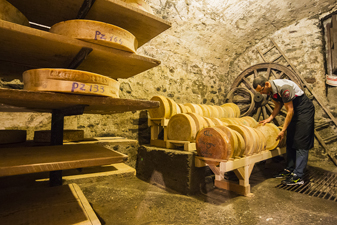 Un racconto a parte merita il Bitto che per i Ciapùn è il vanto e l’anima del commercio. Quando dal bottegone si passa ai retrobottega, oltre ad esserci il Museo (presentato, con descrizione, a parte) c’è tutta una sorprendente articolazione di camere e di celle ad alveare che si snodano nelle cantine con altrettanti spazi in penombra, dove giacciono, modellate in bella fila, le forme tonde del Bitto.